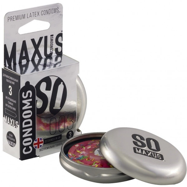 Презервативы экстра тонкие "Maxus 003" в жестяном футляре, 3шт